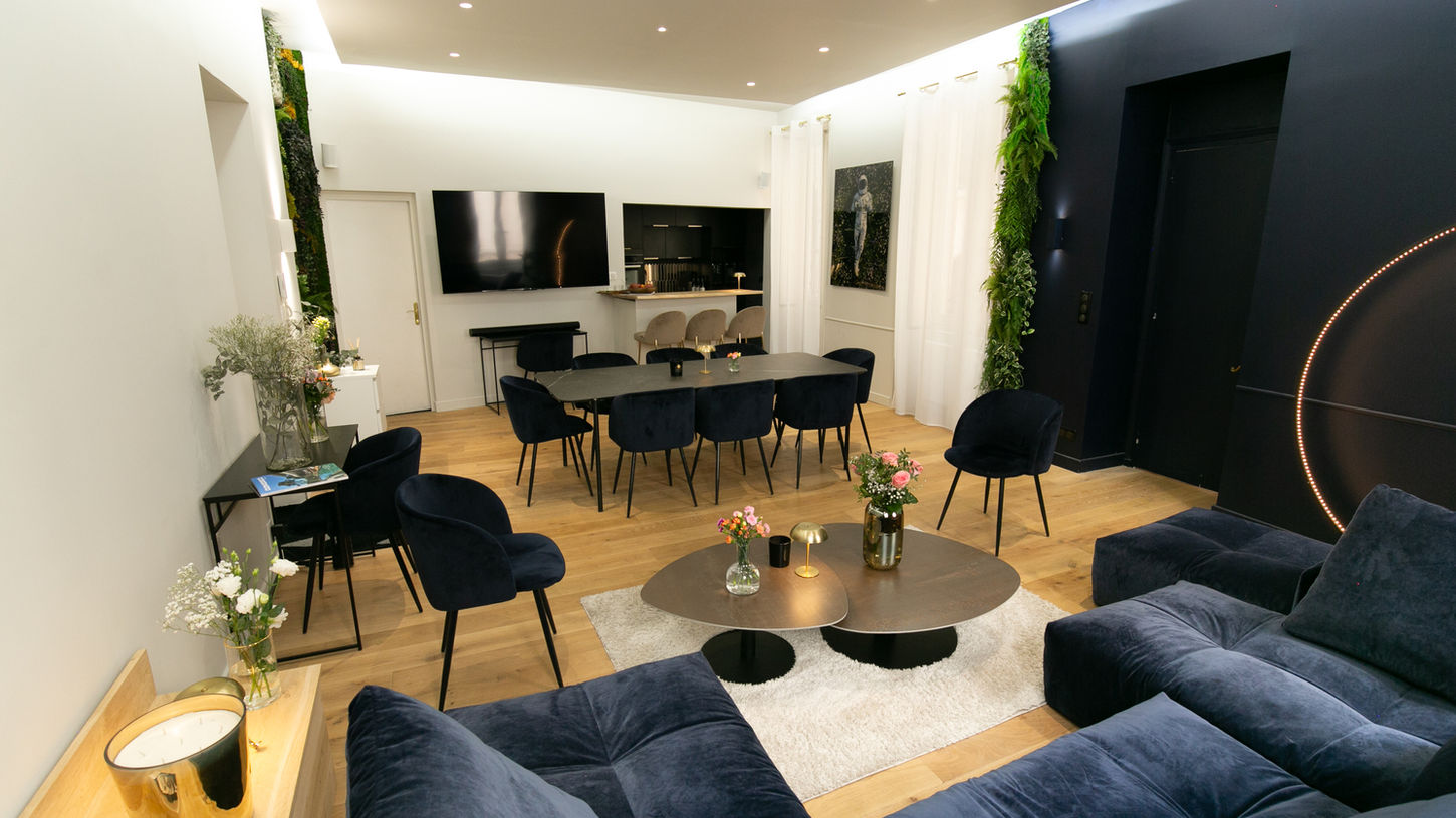 Notre espace principal de 50 m² offre un salon cosy, entièrement équipé pour recevoir jusqu’à 20 personnes.